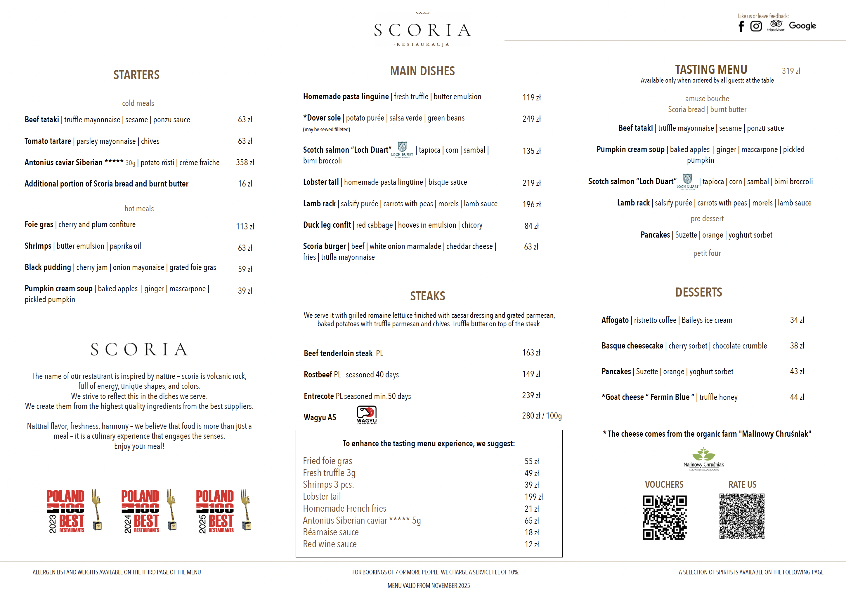Największą inspiracją pozostaje dla niego tradycja i podróże, które pozwalają pogłębiać pasję tworzenia nowych kompozycji smakowych. Otwarta kuchnia Pawła Stawickiego zaprasza Gości do uczestniczenia w niepowtarzalnej sztuce kulinarnej restauracji Scoria.